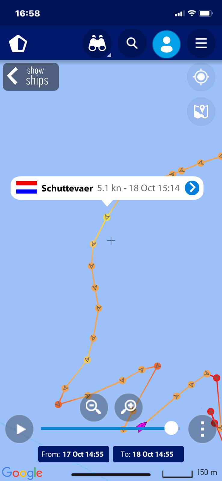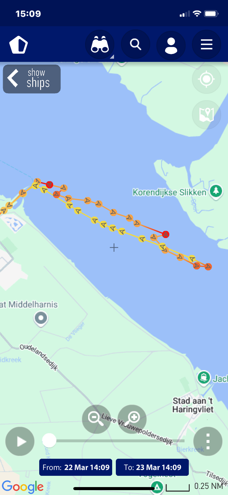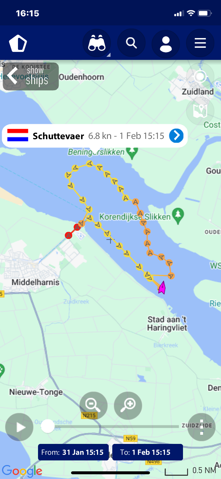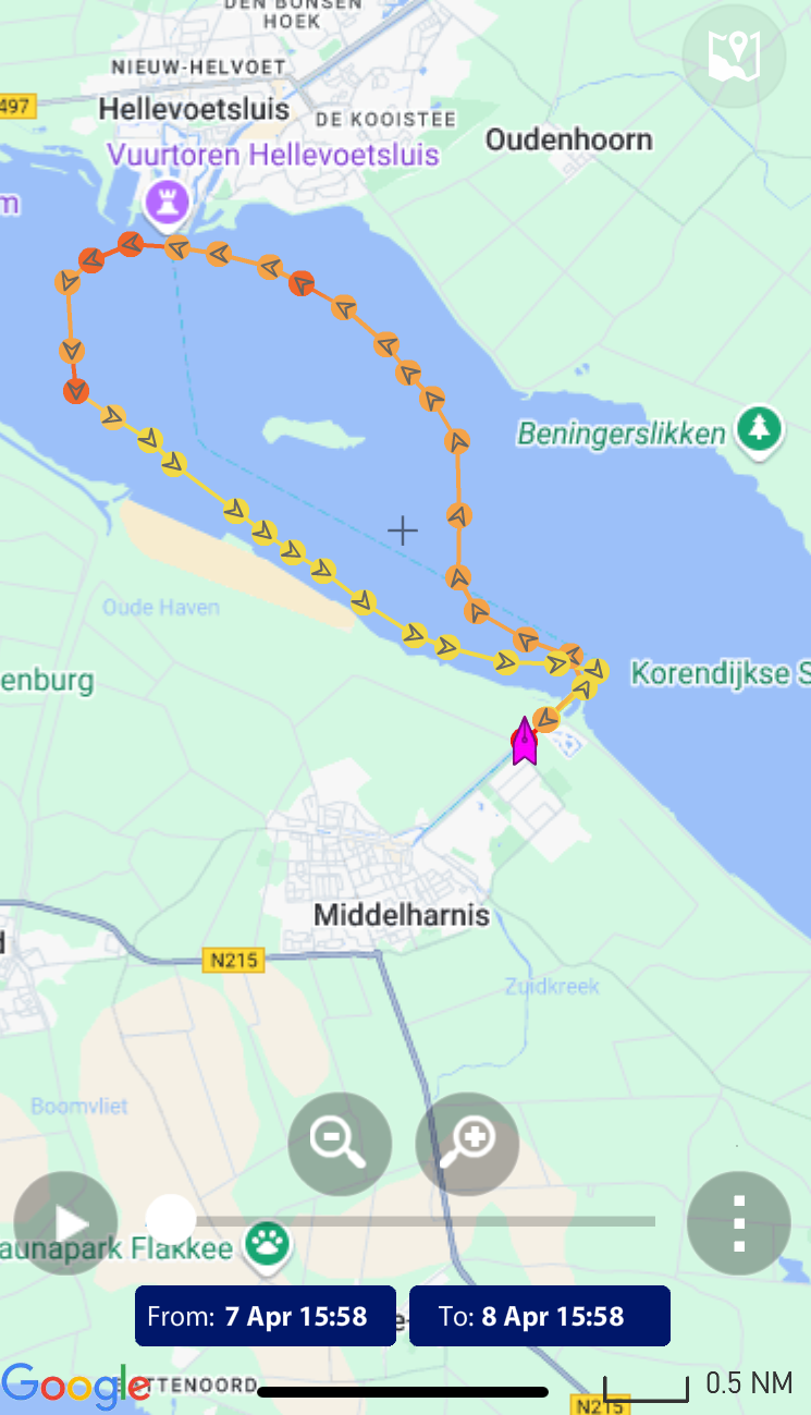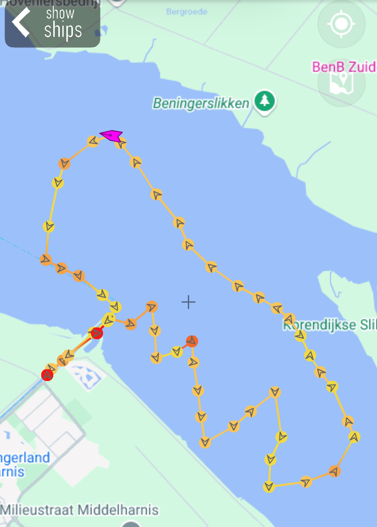 verloop van de tocht, deze zijn gemaakt op basis van de AIS gegevens zoals