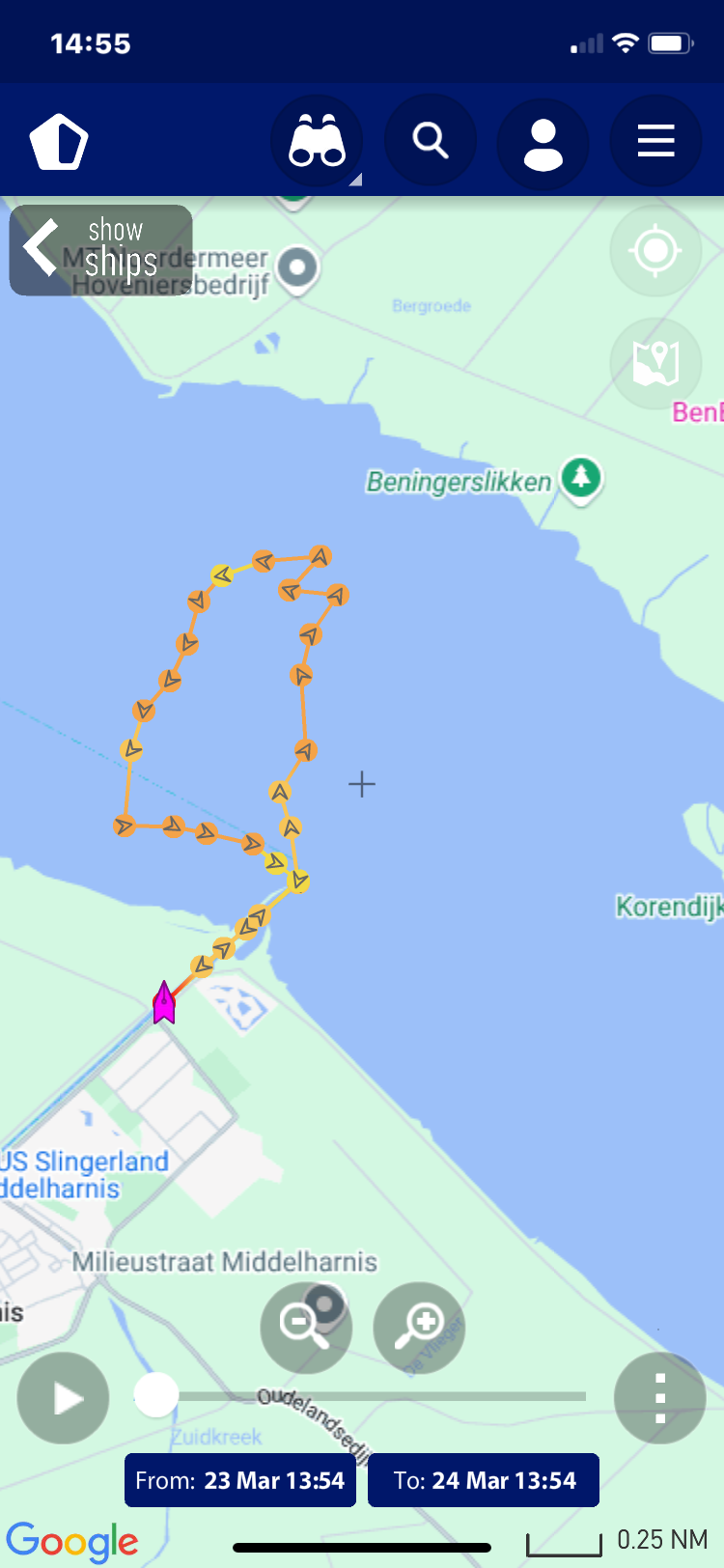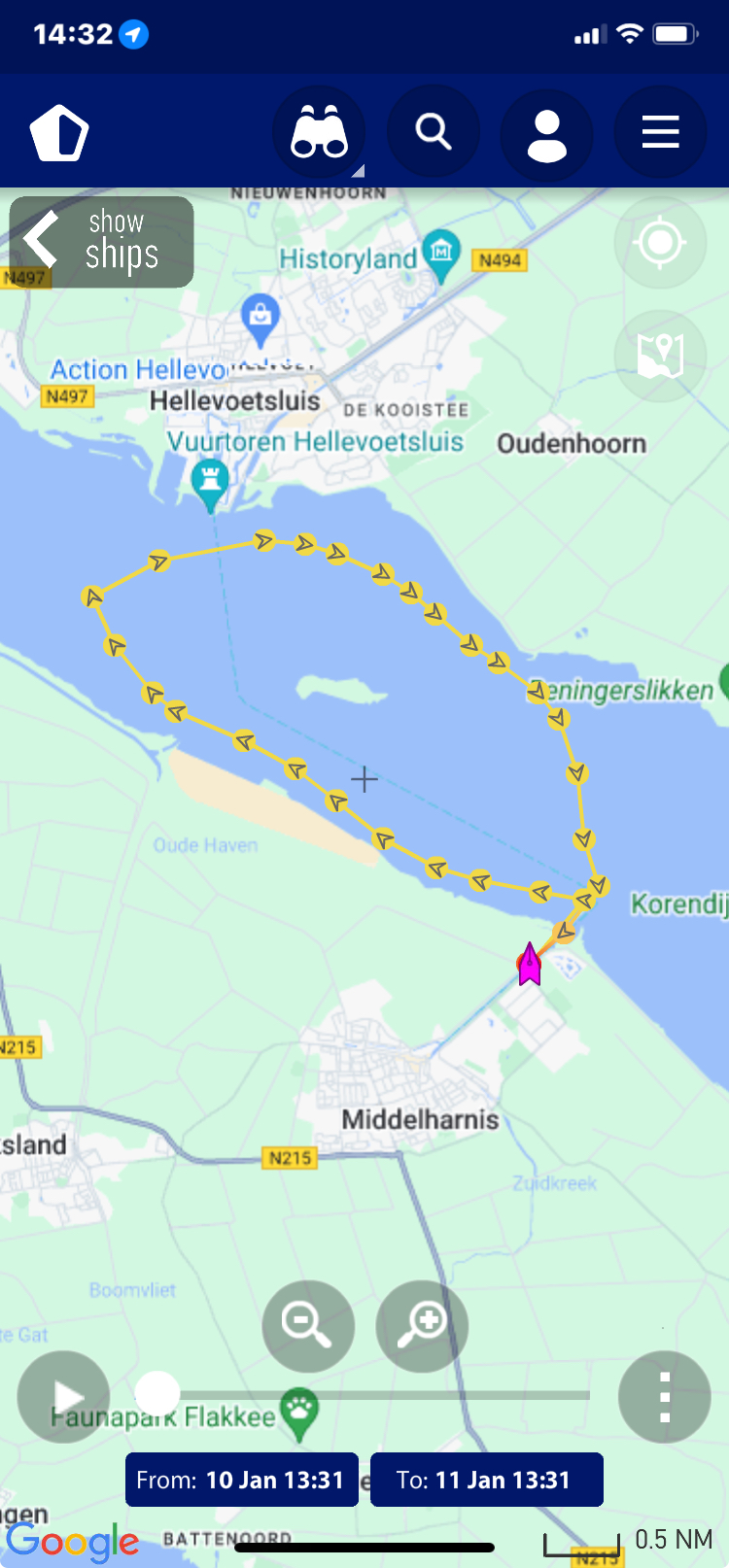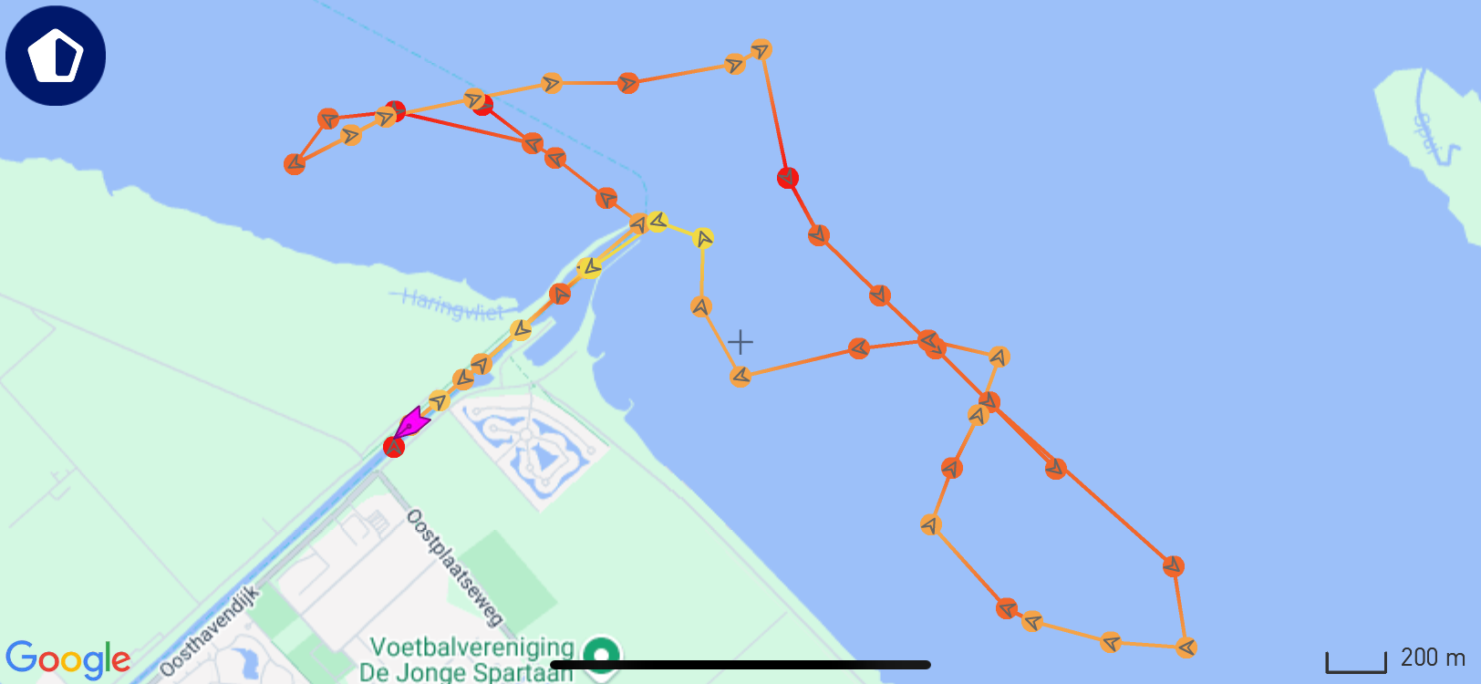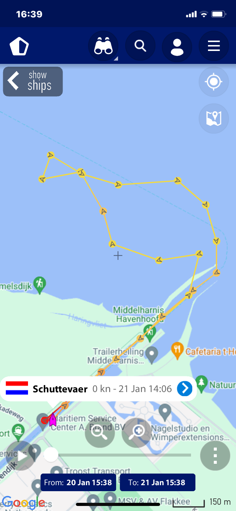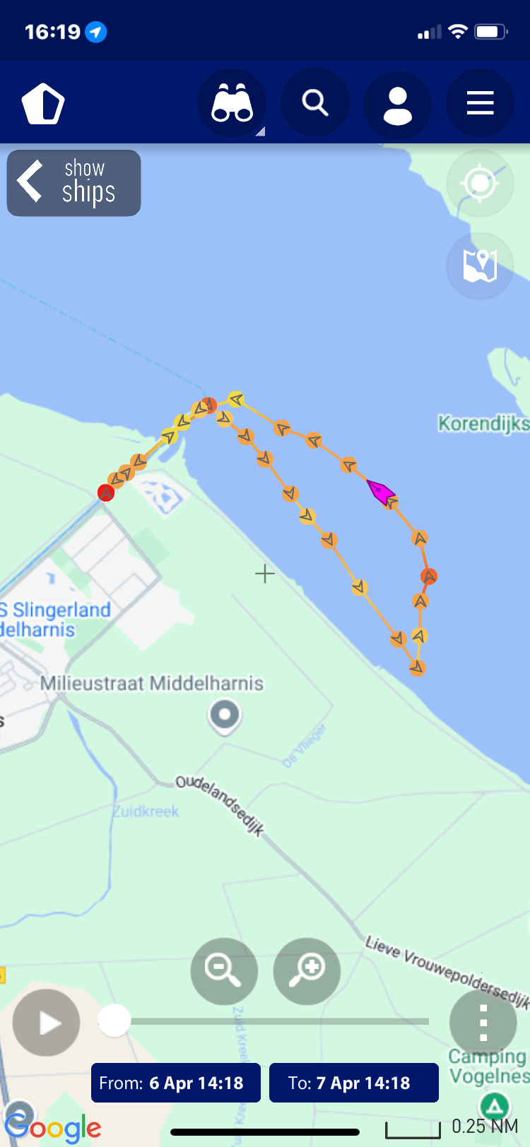 verloop van de tocht, deze zijn gemaakt op basis van de AIS gegevens zoals