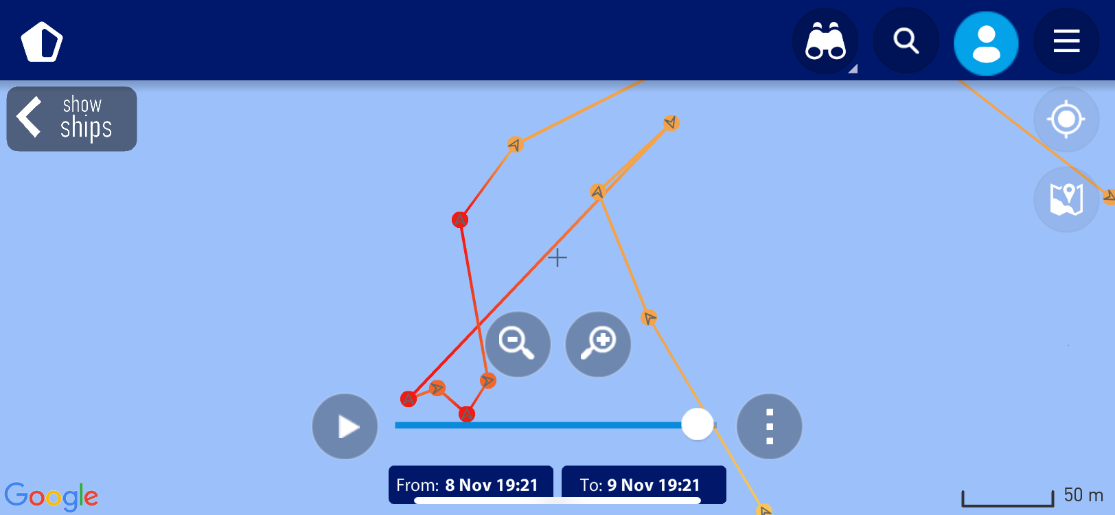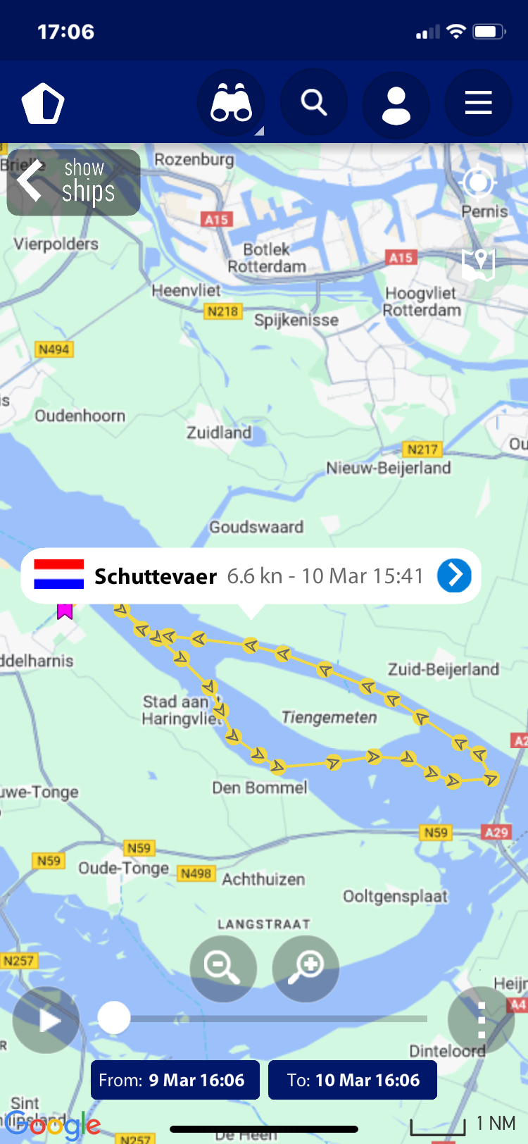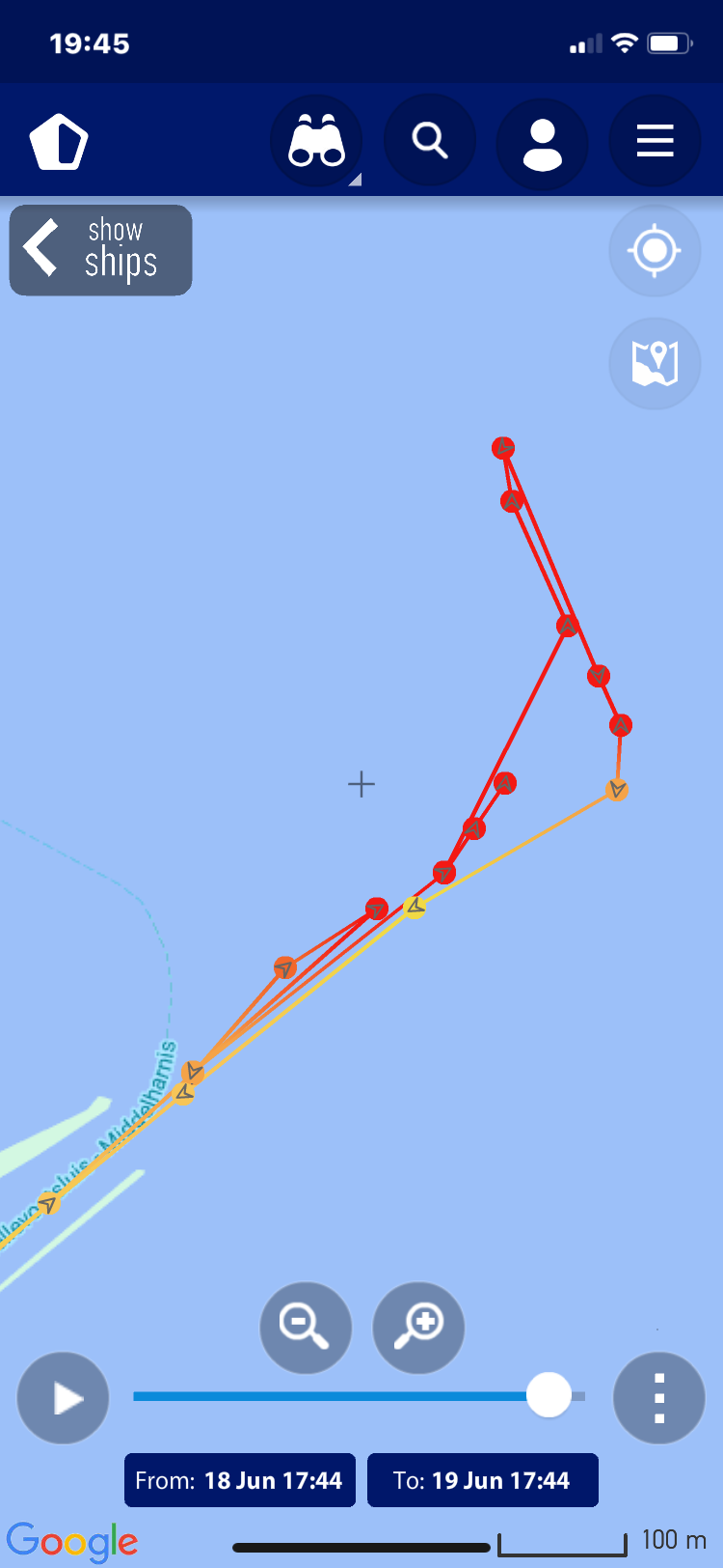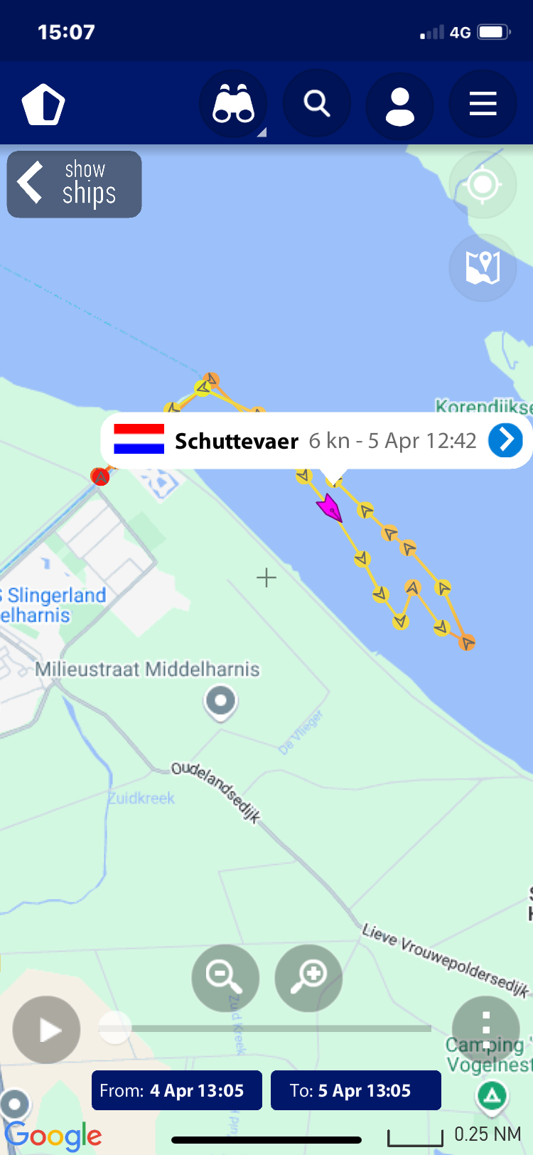verloop van de tocht, deze zijn gemaakt op basis van de AIS gegevens zoals