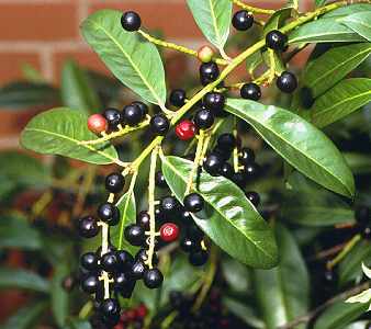 | Giftige delen: | Bladeren en pitten uit de bessen, 't